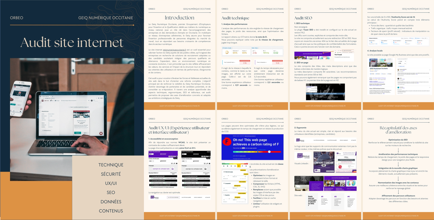 UX/UI, SEO, performance technique, accessibilité, éco-conception et contenus.